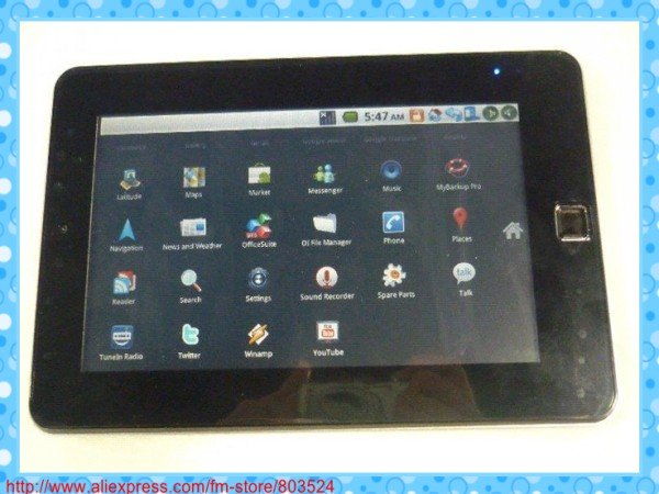 Place of Origin: Guangdong China (Mainland) Screen Size: 7.2" Products Status: Stock Graphics Card Type: Integrated Card Type: Netbook,Tablet PC,Notebook Processor Main Frequency: 1G MHZ Memory Capacity: 256MB Weight: 1.5KG Model Number: M7002 Processor Type: zt180 Processor Brand: zt180 Hard Drive Capacity: 4GB Optical Drive Type: Other color: BLACK OS: ANDROID 2.2 HDD: 4GB MEMORY: 256MB