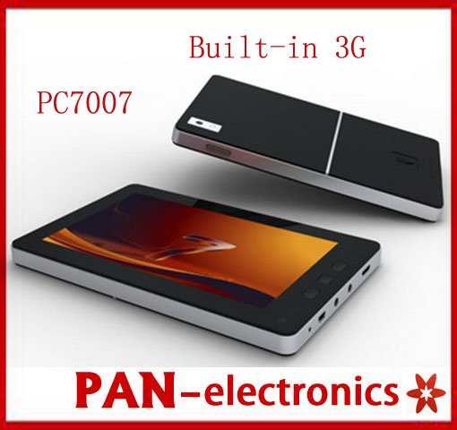 Place of Origin: Guangdong China (Mainland) Screen Size: 7.2" Products Status: Stock Graphics Card Type: Integrated Card Type: Tablet PC Hard Drive Capacity: ≤ 40GB Processor Main Frequency: 720MHz Memory Capacity: 256MB Weight: 0.7 Model Number: PC7007 Processor Type: Telechip Processor Brand: Other 3G: built-in