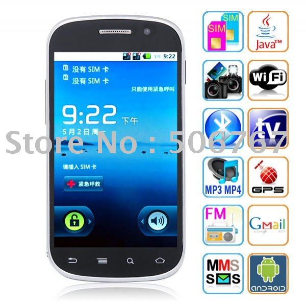US$ 105.99 - US$ 112.66/pieceFree shipping A9000 China Dual sim dual standby Android 2.2 Smart phone WIFI TV GPS smart phone