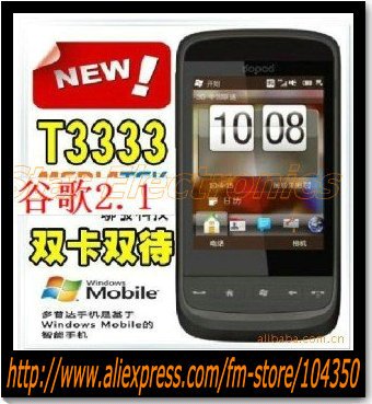 US$ 126.32 - US$ 127.37/pieceT3333 Window Mobile 6.5 OS 2.8"touch screen wifi GPS with 2gb smartphone