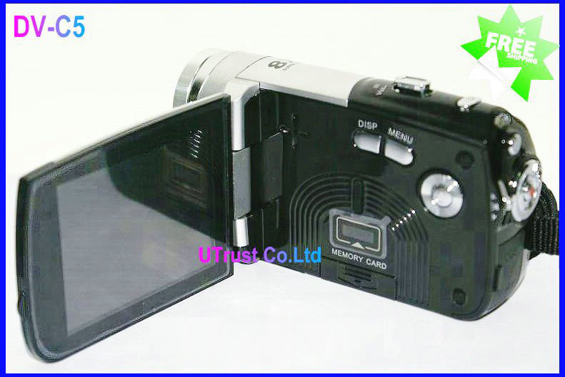 Place of Origin: Guangdong China (Mainland) Screen Size: 2" - 3" Media Type: HDD / Flash Memory Brand Name: UTrust Optical Zoom: < 10x Model Number: DV-C5 Color: Red/Silver/Black Type: HD Digital Camcorder LCD: 3.0"TFT LCD Zoom: 8X Digital Zoom Sensor: 5.1MP CMOS Sensor TV Out: Yes Anti-shake: Yes Max.Megapixel: 16.0MP via interpolation