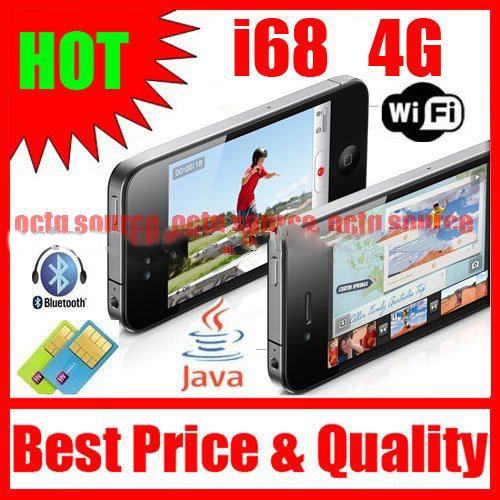 Place of Origin: Guangdong China (Mainland) Display Color: Color Brand Name: OCTQ Feature: Bluetooth,Email,WiFi,FM Ra... Camera: < 3MP Design: Bar Screen: > 3" Model Number: I68 4G Operation System: I68 4G I68 4G wifi: Touch screen Quad band: yes Dual Sim Card Dual Standby: yes WiFi: yes Java: yes Bluetooth: yes FM Radio: yes