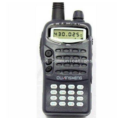Place of Origin: Fujian China (Mainland) Talk Range: 5-20km Type: Handheld Brand Name: QUANSHENG Storage Channel: 99 Dimensions: 89*53*29MM Frequency Range: 400-470MHz Model Number: TG-45AT Color: Black Housing: PC+ABS Battery: NI-MH 1100MAH Weight: 220g(radio body) Case: PC+ABS