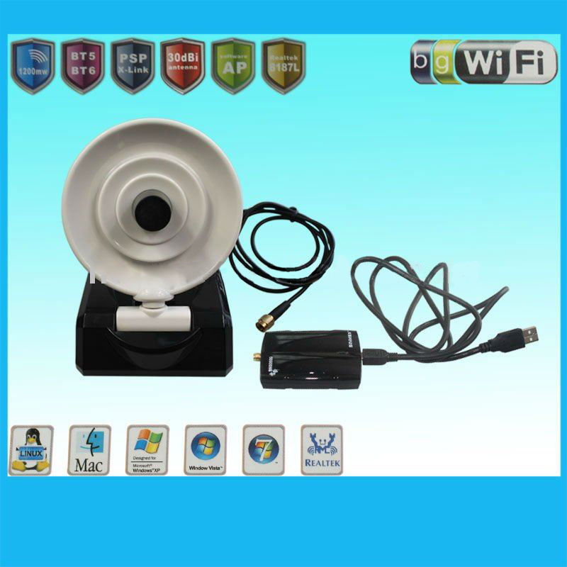 Place of Origin: Guangdong China (Mainland) Products Status: Stock Brand Name: wifisky Type: Wireless Interface Type: USB Certification: FCC/CE Kind: External Transmission Rate: 54Mbps Model Number: 980000G Application: Desktop/Laptop/Tablet pc/S... COLOR: white/black SIZE: 26.5cm*13cm*7.5cm WEIGHT: 0.35KG Interface: USB 2.0/1.1 VM: BT5/BT6 Antenna: 30DBI Antenna Connector: SMA Temperature: -20 ~ 70 ℃ Humidity: 10 ~90% (non-condensing) chipset: Realtek 8187L